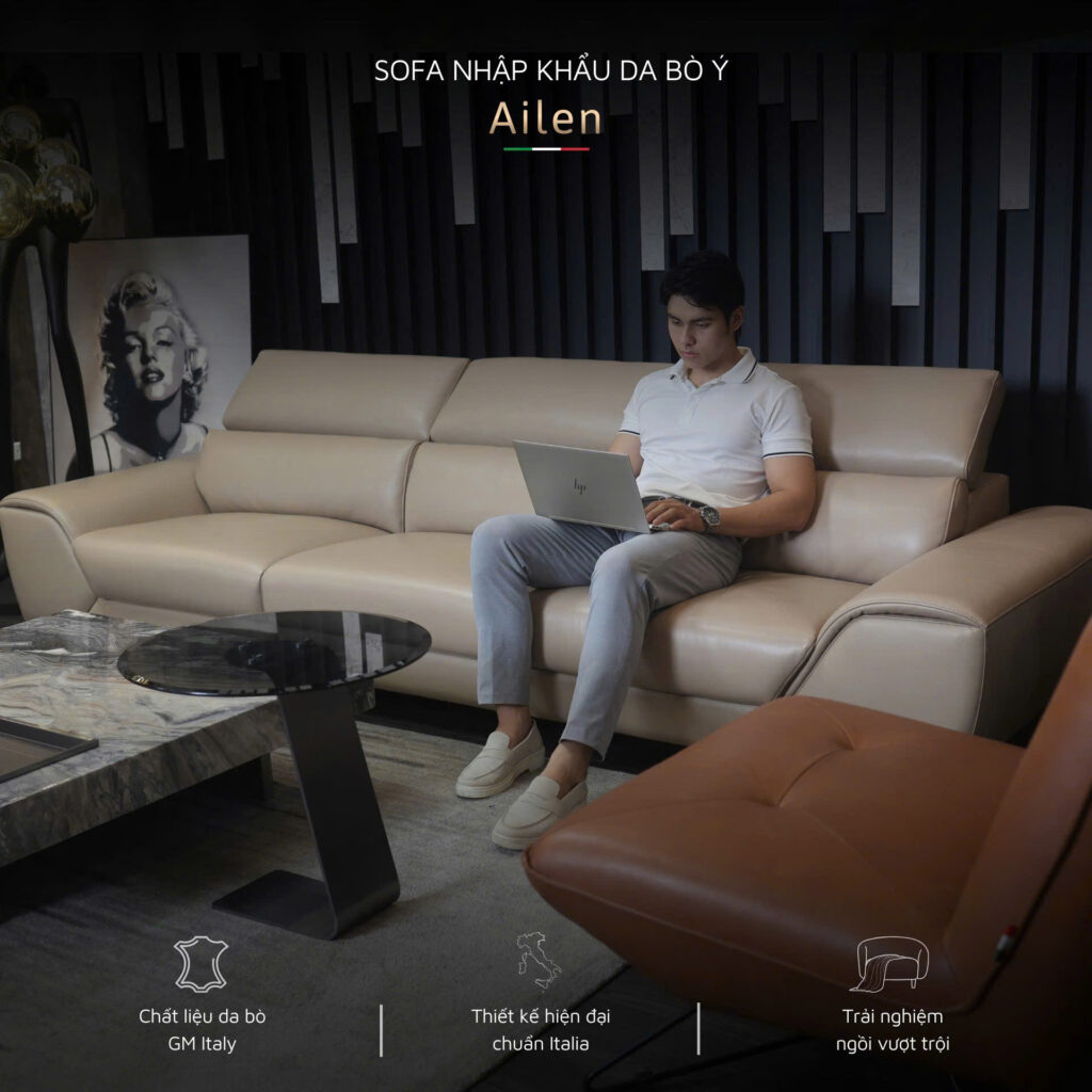 Giá sofa Ailen được xây dựng tương xứng với chất lượng da Ý cao cấp và giá trị nhập khẩu nguyên chiếc, đảm bảo minh bạch và cạnh tranh trong phân khúc sofa da Italy cao cấp.