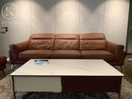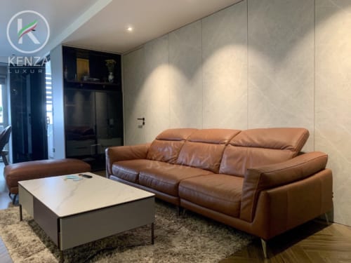 Sự phối hợp giữa màu sắc và ánh sáng, cùng chất liệu da bò thật cao cấp của mẫu Athena không chỉ giúp nơi sinh hoạt chung thêm ấn tượng mà còn đem đến một không gian sống, tràn ngập không khí gia đình.