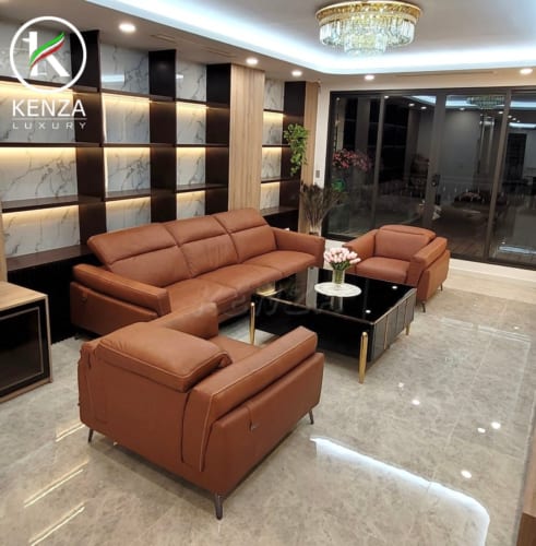 Bộ sofa Athena da thật nổi bật trong không gian phòng khách