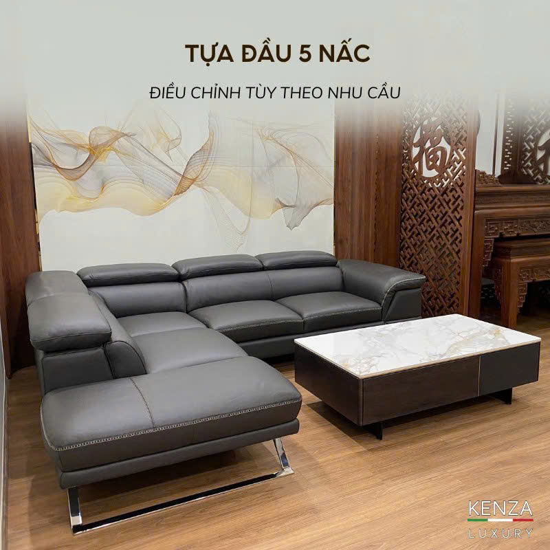 Chi tiết chân kim loại cao thanh thoát mang lại cảm giác nhẹ nhàng, hiện đại và giúp việc vệ sinh gầm sofa dễ dàng – robot hút bụi hoạt động thoải mái. Điểm cộng lớn nhất của sofa Cavour chính là hệ tựa đầu 5 nấc linh hoạt, cho phép điều chỉnh theo nhiều tư thế: ngồi thẳng, ngả lưng, xem phim hay thư giãn – đúng chuẩn trải nghiệm của sofa nhập khẩu Italy cao cấp.