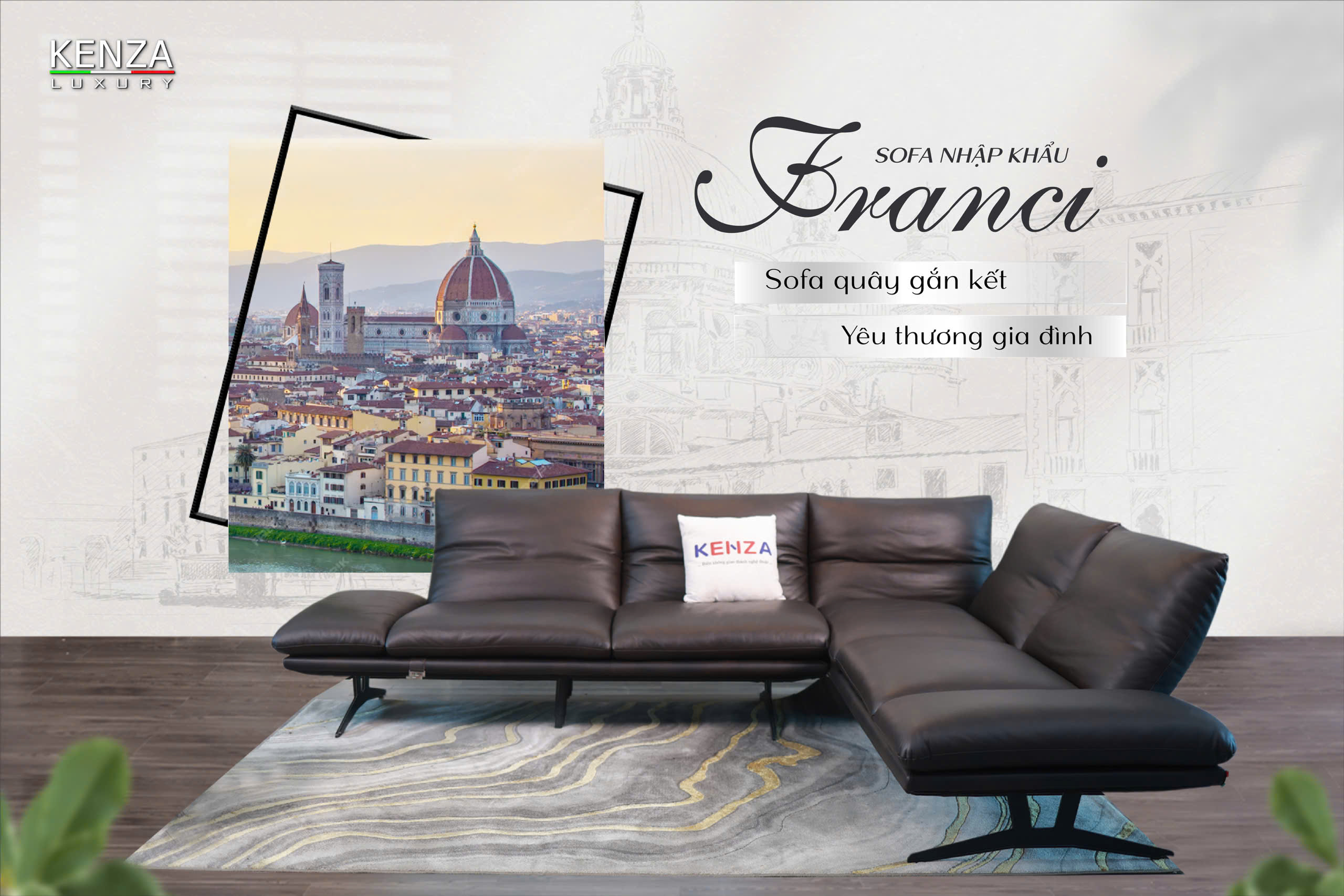 Sofa Franci thuộc dòng sofa nhập khẩu cao cấp của Kenza Luxury, gây ấn tượng mạnh bởi thiết kế tinh tế, hiện đại và khác biệt. Kiểu dáng chữ L (sofa quây) không chỉ tối ưu diện tích mà còn giúp tạo nên một không gian phòng khách sang trọng, đẳng cấp.