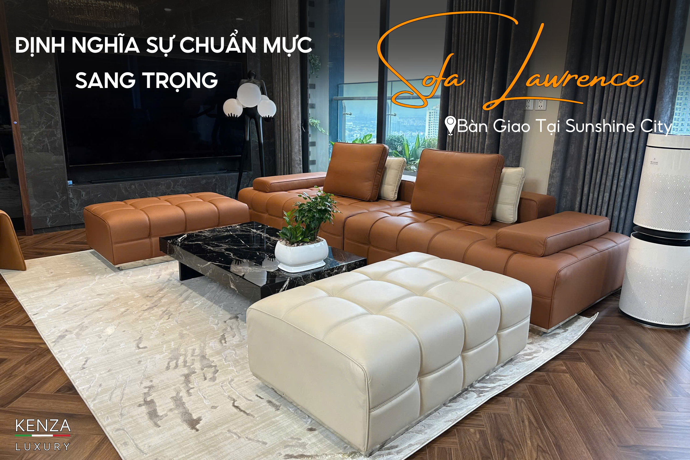 Kenza Luxury vừa hoàn thiện và bàn giao sofa da thật Lawrence cho không gian phòng khách cao cấp tại Sunshine City. Không chỉ là một món nội thất, Lawrence