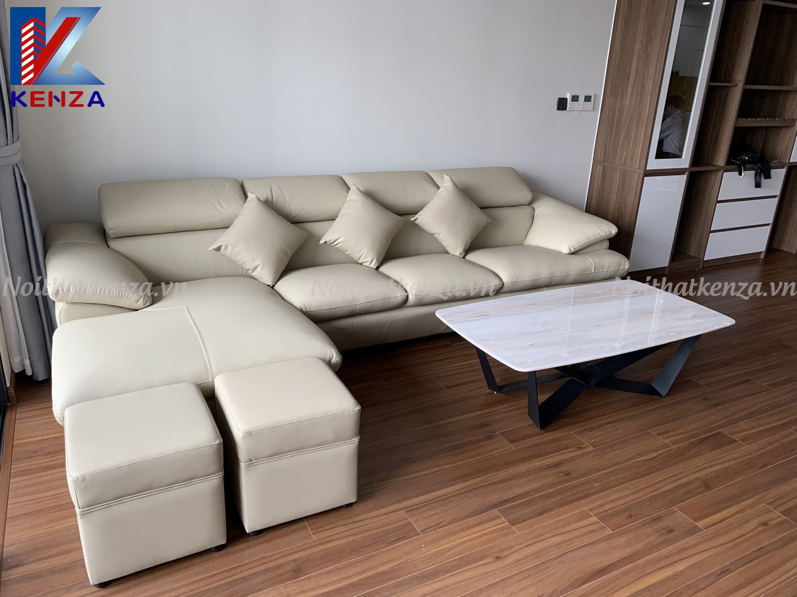 Những hình ảnh thực tế bàn giao của Sofa góc KZ 8740 da thật tại nhà chị Thơ – Chung cư Stellar Lê Văn Thiêm. Sở hữu một không gian